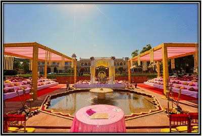 Samode Palace: This is as best as it gets. This place is a regular in the top Wedding Venues in Jaipur list. No list is complete without this one. If you are in Jaipur then this 475-year-old palace of Darbar halls, Sheesh mahals, and Mughal gardens is the place to be. The regal feeling you get here is aclass apart. It can give any Bollywood movie a run for their money such is the opulence of the palace. It has places like Moti Mahal, Swimming pool baradari, Manohar Garden, Durbar Hall, sheesh mahal, etc. All of these sites have combined thecapacity of more than 1000 people. It is also known as the Chomu Palace.